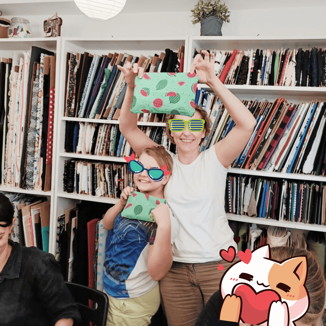 • szycie spódniczki na gumiekażdy z uczestników zajęć wyjdzie z uszytą przez siebie spódniczką, poszewką na poduszkę, gumką scrunchie lub kosmetyczką (do wyboru różne wzory materiałów!).