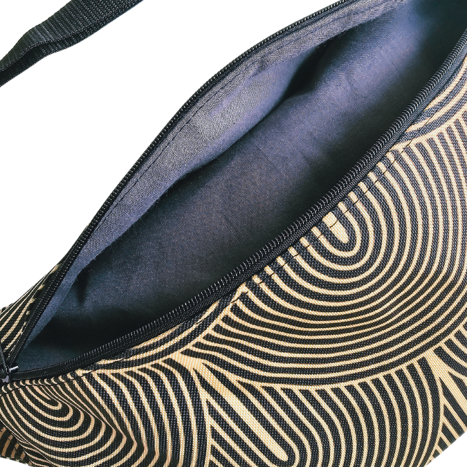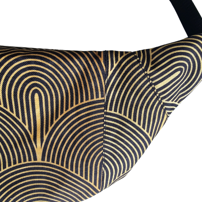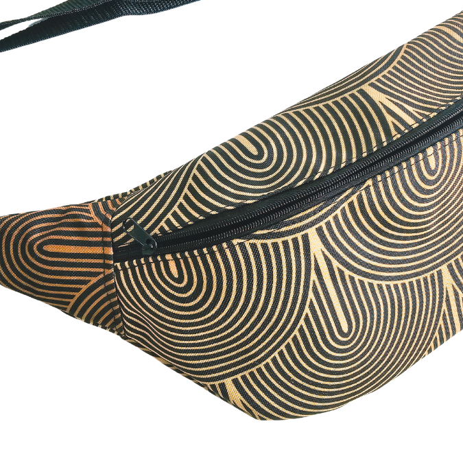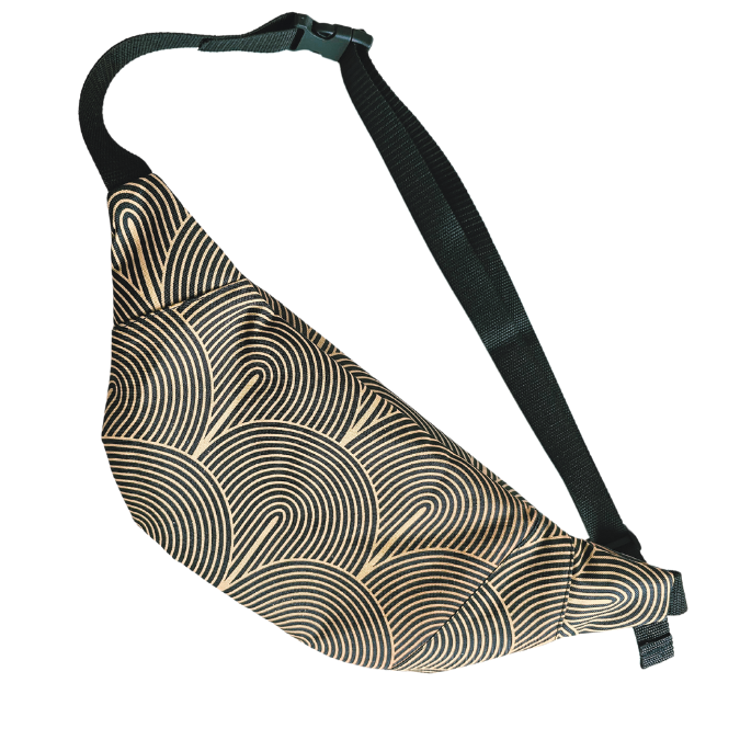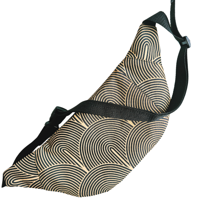 ✨ Saszetka biodrowa „Golden Glow” to dodatek, który rozświetli każdą stylizację. Uszyta w duchu upcyclingu — z czarno-złotej tkaniny wodoodpornej, powstałej z końcówek materiałów po kursach szycia 💫