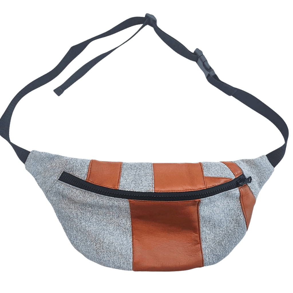 Ta nerka ma konkretny vibe — trochę retro, trochę „coffee shop chic”, trochę „jeans spotyka skórę i robią razem dobry duet” 😎 Nerka uszyta z denimowych resztek i skórzanych wstawek, które dostały drugie życie w upcyclingowym projekcie. Połączenie szarego jeansu i karmelowej ekoskóry tworzy minimalistyczny, ale bardzo wyrazisty dodatek.